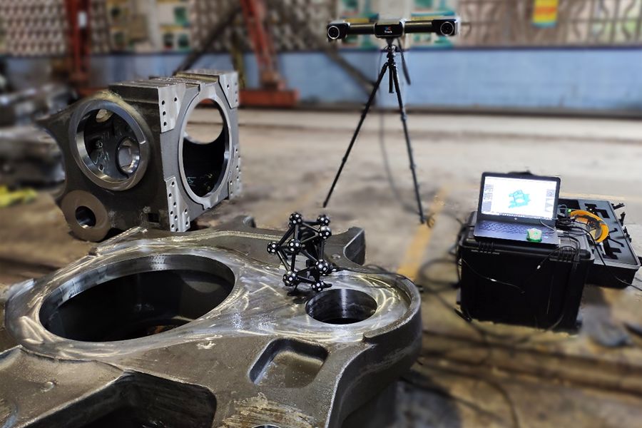 Hyperscan Ultra智能光學追蹤3D掃描儀因其小巧,便攜,高精度的特點,不受工廠復雜環(huán)境的影響,既能滿足其檢測要求,又能極大的提高質(zhì)量檢測的效率,且能兼顧許多傳統(tǒng)檢具無法檢測的參數(shù)種類,已經(jīng)逐步被企業(yè)所接受和應用,在工業(yè)質(zhì)量檢測領域得到了廣泛的應用。尤其是在鑄造行業(yè),HyperScan Ultra 因其無需粘貼標志點,使用便攜等特點,在應用大型鑄件時有著快速全面的特點,對提高此類工件檢測效率有著巨大的提升和檢測環(huán)節(jié)的補充。