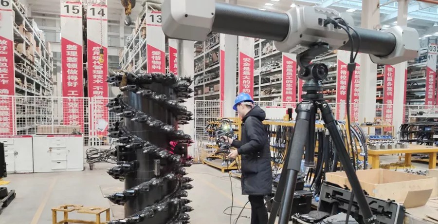 銑刨鼓是道路銑刨機的核心,需經(jīng)過嚴(yán)格的檢測,以避免磨損以及變形的負(fù)荷縮短設(shè)備使用壽命。過去采用接觸式打點來進(jìn)行檢測,不但測量速度慢,而且測量死角多,測量數(shù)據(jù)不全,且銑刨鼓的刀頭為活動刀頭,裝配后測量無法測得準(zhǔn)確的刀頭點位。